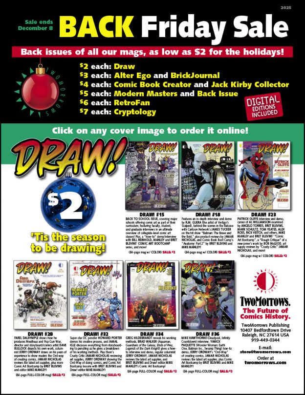 Forget Black Friday—TwoMorrows Publishing’s BACK Friday Sale is happening now through December 8, with back issues of our mags as low as $2 each!